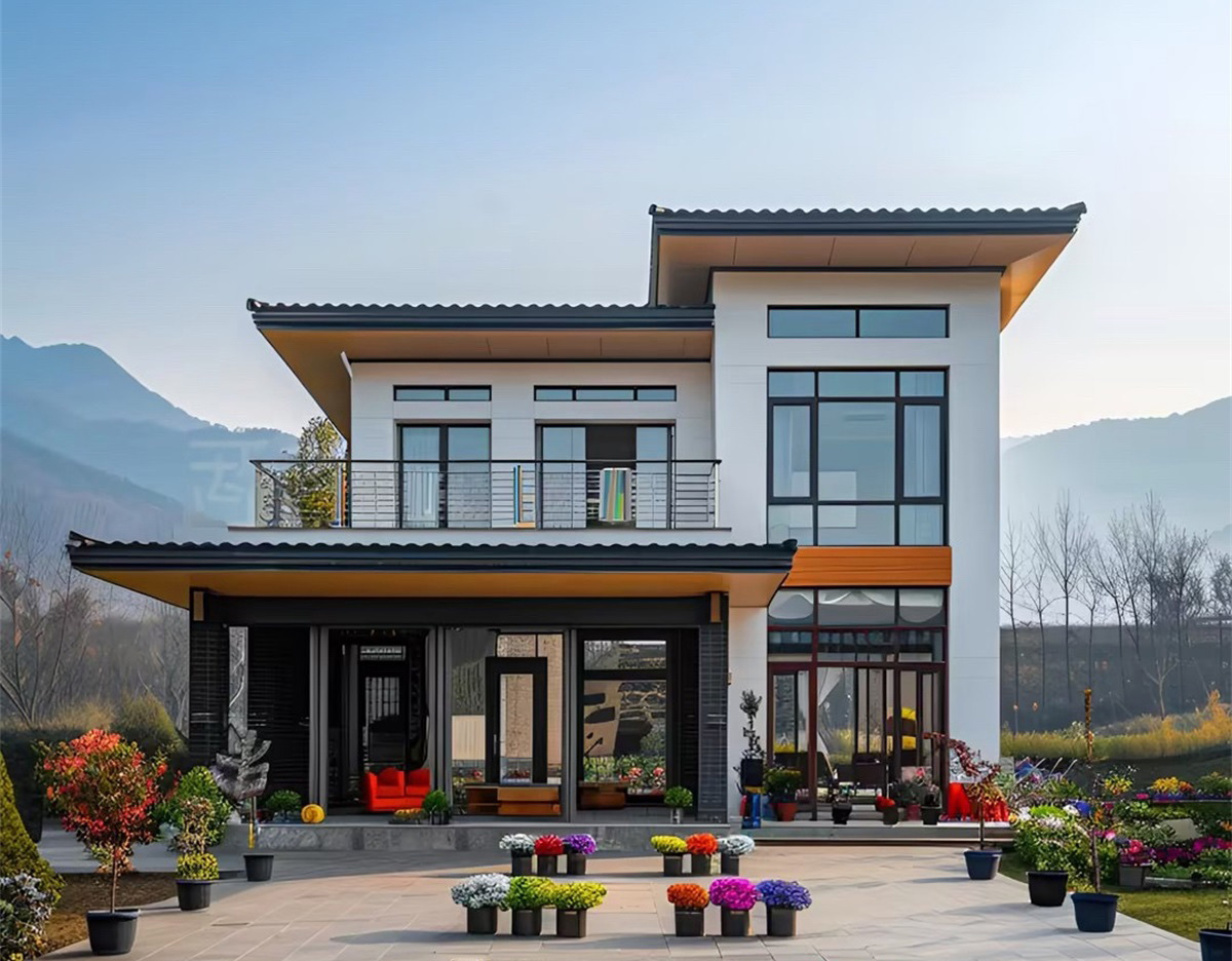 现代风格美观时尚,但配色过于冰冷,线条过于方正。必须要融入到中式风格中,才更适合乡村自建。